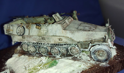I used various snow and ice effect products from Tamiya and Green Stuff both on the ground work and on the vehicle.